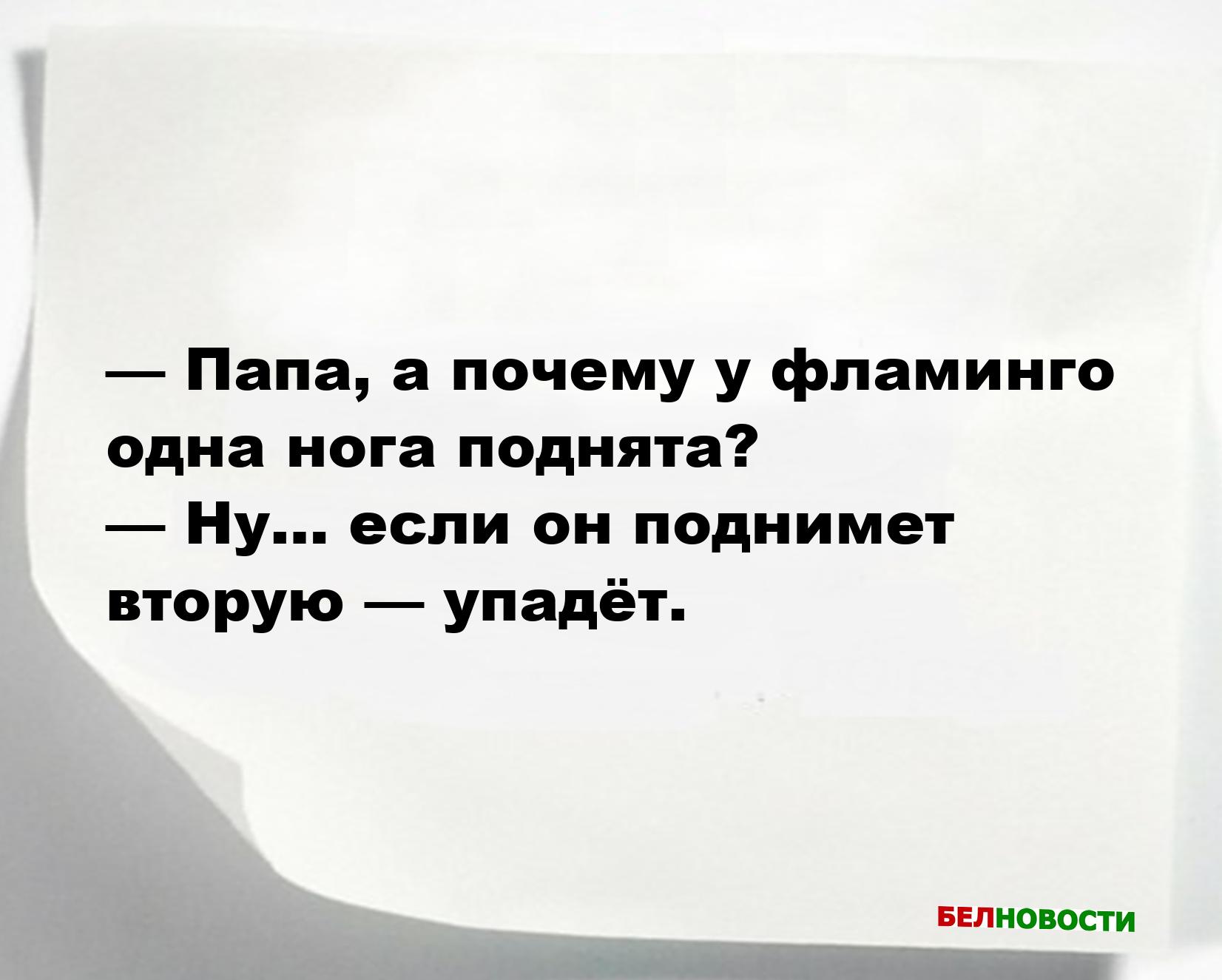 — Папа, а почему у фламинго одна нога поднята?