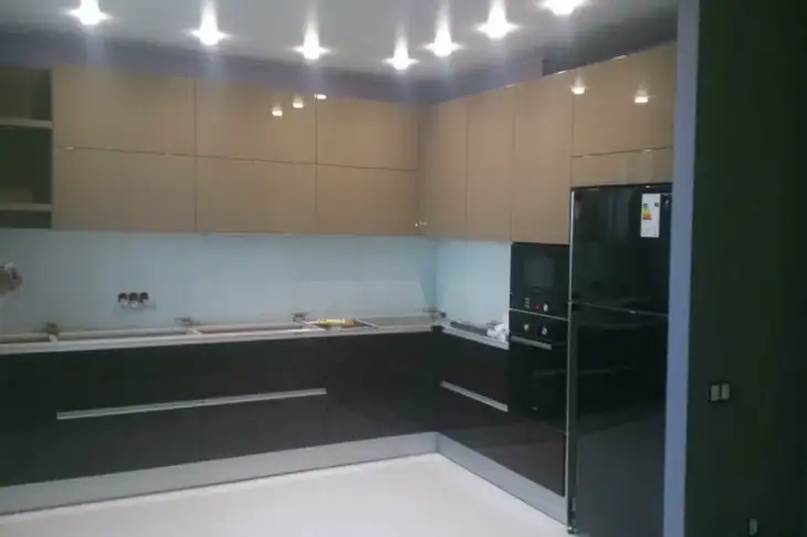 Так, глянец способен зрительно увеличить кухню за счет эффекта зеркальной поверхности. Это делает его отличным выбором для владельцев маленьких «пищеблоков». Минус в том, что на глянцевых поверхностях очень заметны отпечатки пальцев, брызги и прочие загрязнения, коих на кухне немало.