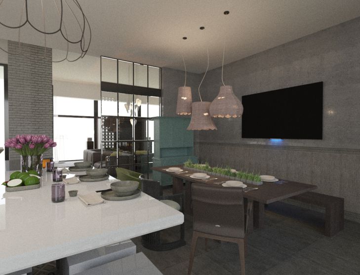 Ещё одним из образов, не уступающих верхних позиций в рейтинге, считается индустриальный стиль, что наверняка связывают с понятием стиля лофт. Такой дизайн интерьера делает акцент на белом, сером и чёрном цветах. Кроме того, вмешивается и колер красного кирпича, который появляется на одной из стен или кухонном острове. Атмосфера всего интерьера сырая и, как следует из названия, индустриальная.