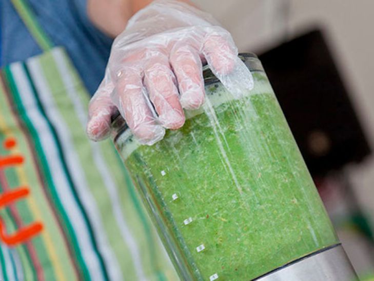 • взбивать на максимальной скорости примерно полторы минуты. Показатель готовности - ярко зелёный цвет коктейля;