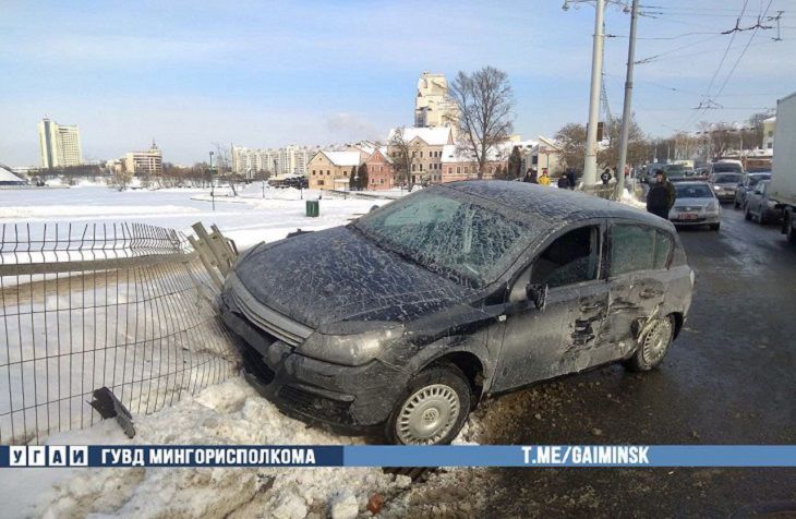 Серьезное дорожно-транспортное происшествие случилось в центре белорусской столицы. Столкнулись грузовой автомобиль МАЗ и легковой «Опель».