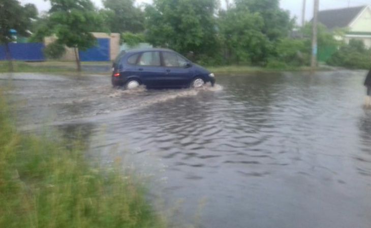 Местные жители выкладывают в социальных сетях фотографии с последствиями стихии: на кадрах запечатлен крупный град и затопленные улицы.