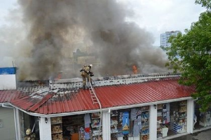 Так, горела смежная крыша торговых павильонов, в которых находилась сувенирная продукция. На место прибыли пожарные, которые ликвидировали возгорания.