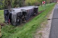 Машина вылетела с дороги в кювет, где опрокинулась и врезалась в дерево.
