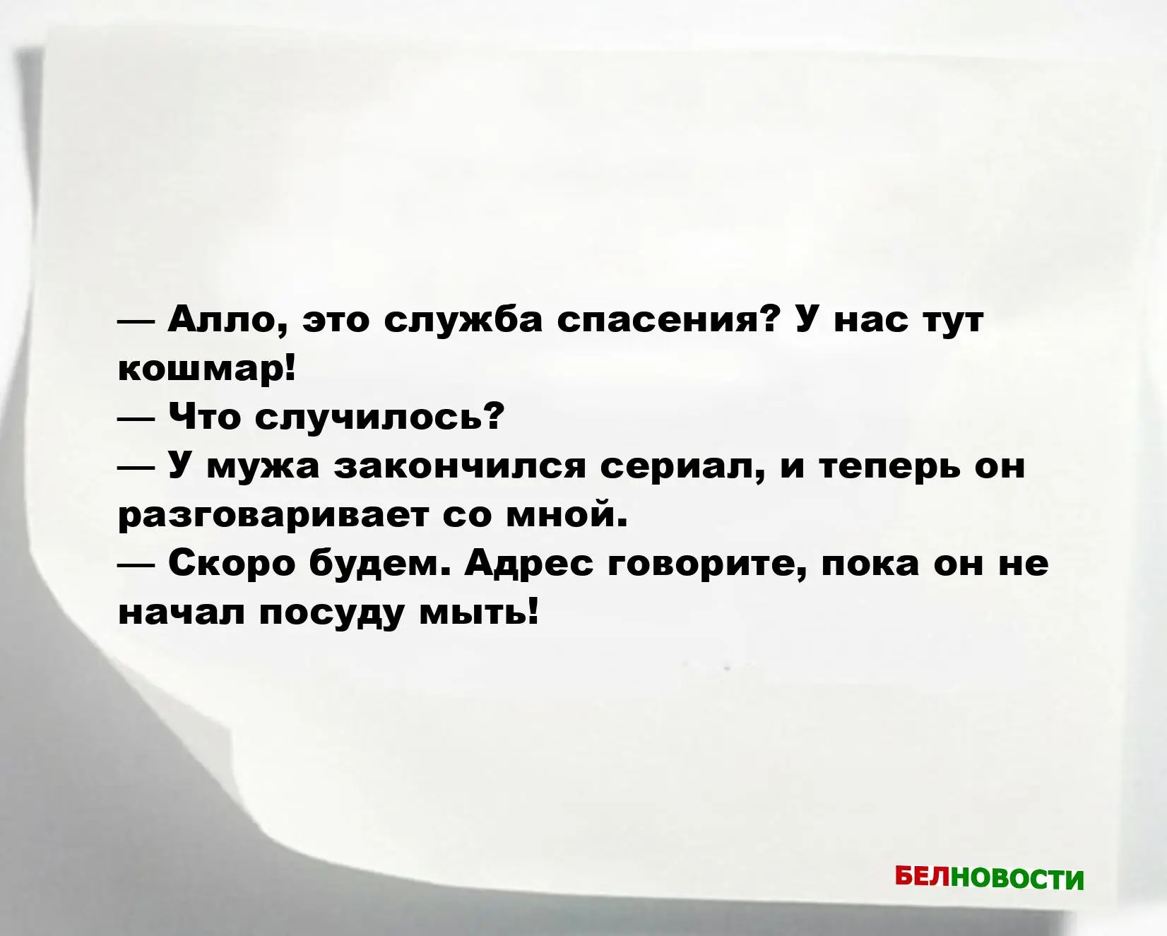 — Алло, это служба спасения? У нас тут кошмар!