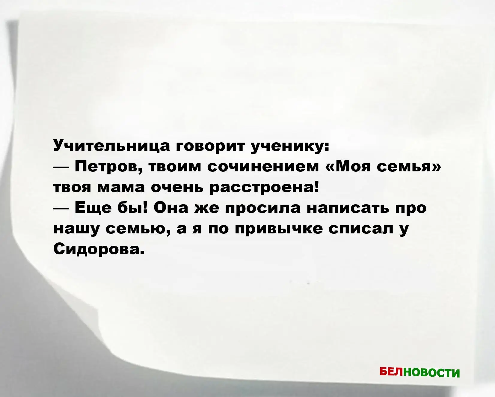 — Еще бы! Она же просила написать про нашу семью, а я по привычке списал у Сидорова.