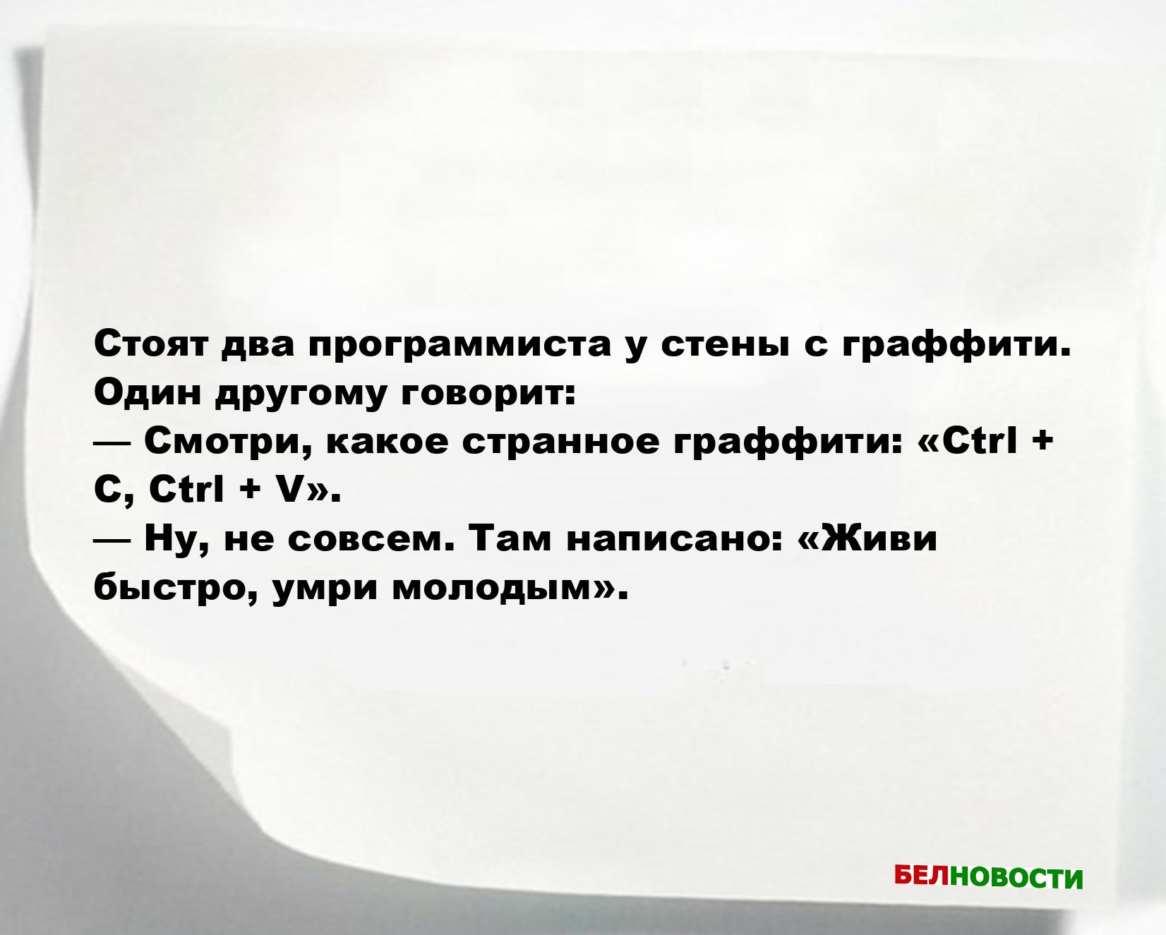 — Смотри, какое странное граффити: «Ctrl + C, Ctrl + V».