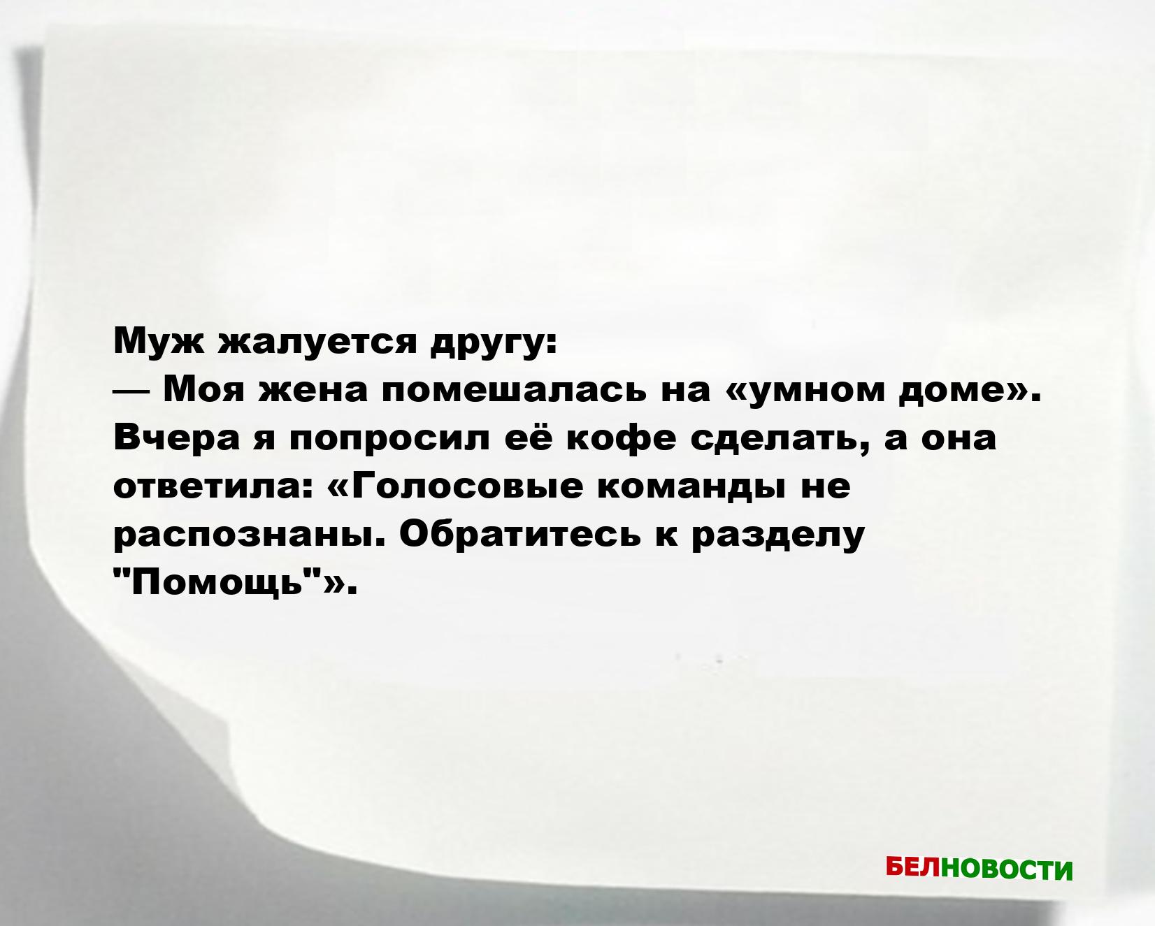 — Моя жена помешалась на «умном доме». Вчера я попросил её кофе сделать, а она ответила: «Голосовые команды не распознаны. Обратитесь к разделу "Помощь"».