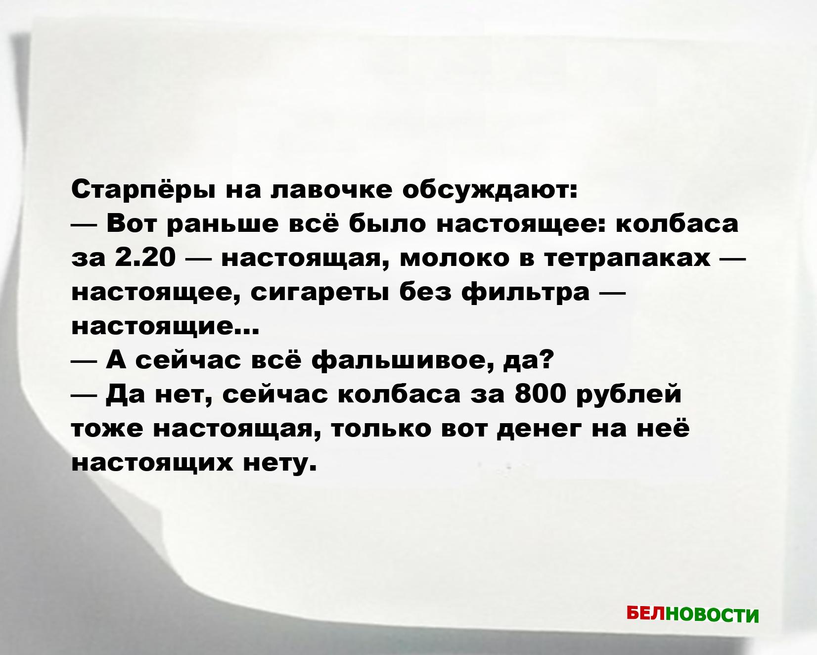 — Да нет, сейчас колбаса за 800 рублей тоже настоящая, только вот денег на неё настоящих нету.