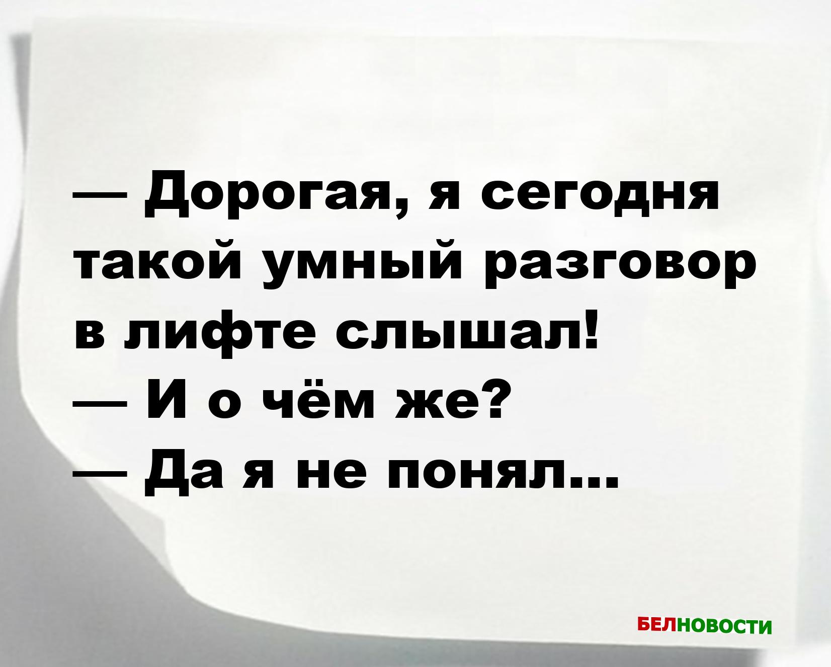 — Дорогая, я сегодня такой умный разговор в лифте слышал!