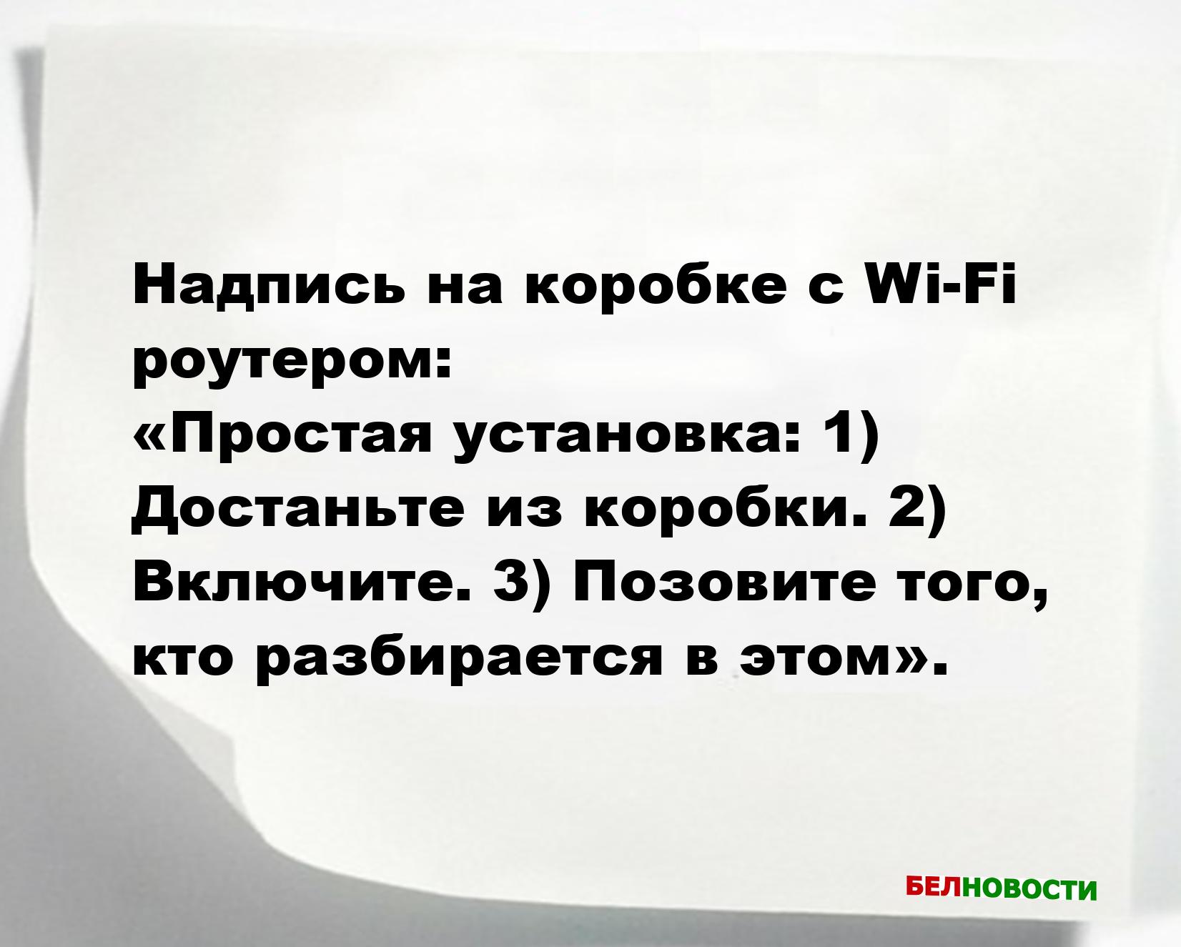 «Простая установка: 1) Достаньте из коробки. 2) Включите. 3) Позовите того, кто разбирается в этом».