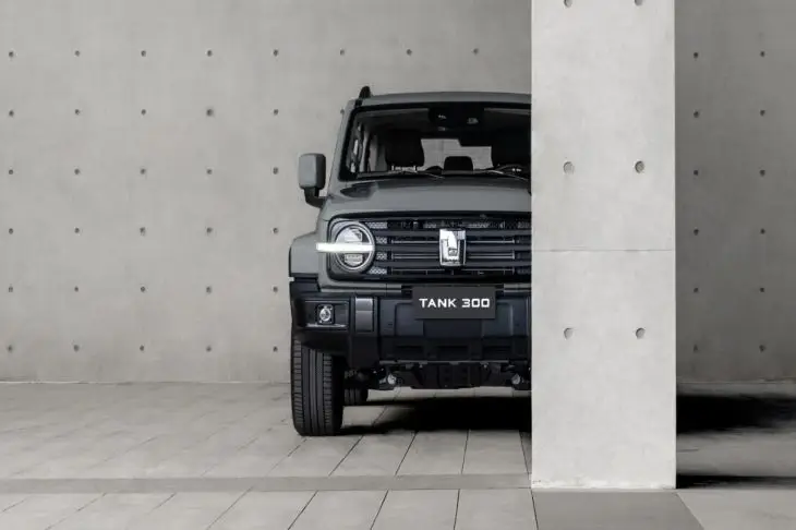 Tank 300 2025 продолжает линию, сделавшую модель популярной: рамная конструкция, выраженный квадратный силуэт, высокая посадка и акцент на проходимость. Внешний облик автомобиля напоминает классические внедорожники, что привлекает поклонников традиционного подхода.