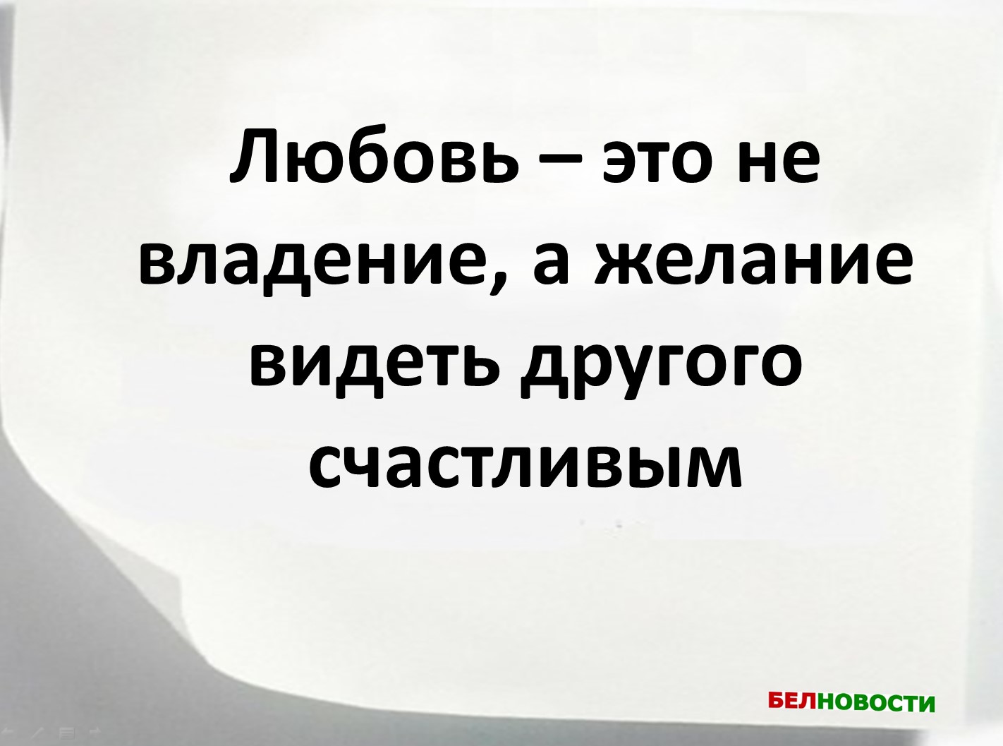 «Любовь – это не владение, а желание видеть другого счастливым.»