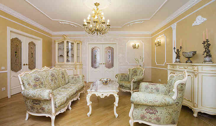 Сегодня дизайнеры могут в стиле рококо оформить спальню, ванную комнату, но чаще этот стиль используют при оформлении гостиной.
