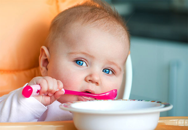 Психологи рекомендуют мамам пробовать предлагать ложку, когда он уже уверенно сидит и кушает в стульчике для кормления при помощи взрослых. Как правило, это приходит в 7-8 месяцев.