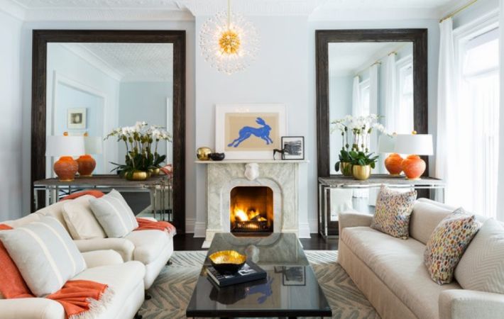 В комнатах зеркала могут представлять собой как отдельный элемент, так и композицию.