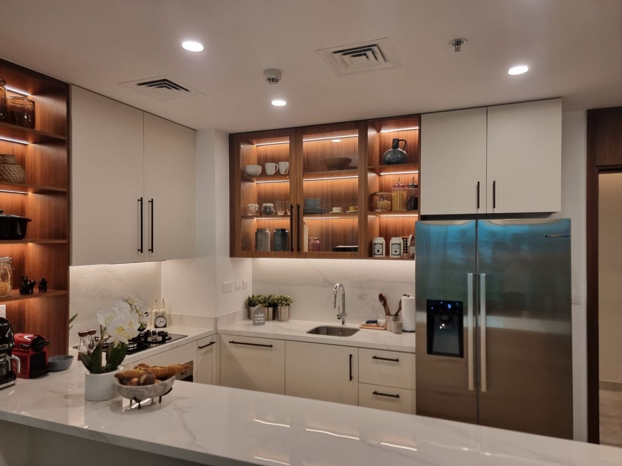Меньше — и вы не сможете открыть духовку или посудомойку, будете биться углами и проклинать день, когда решились на этот дизайн. Оптимальная ширина — 120 см, чтобы два человека могли разминуться.