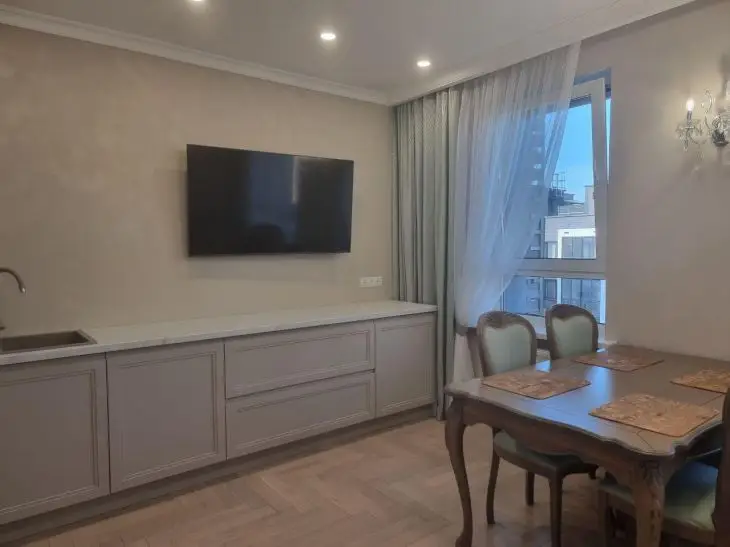 Навесных шкафов нет, и пространство кажется свободнее, чем в обычных квартирах.