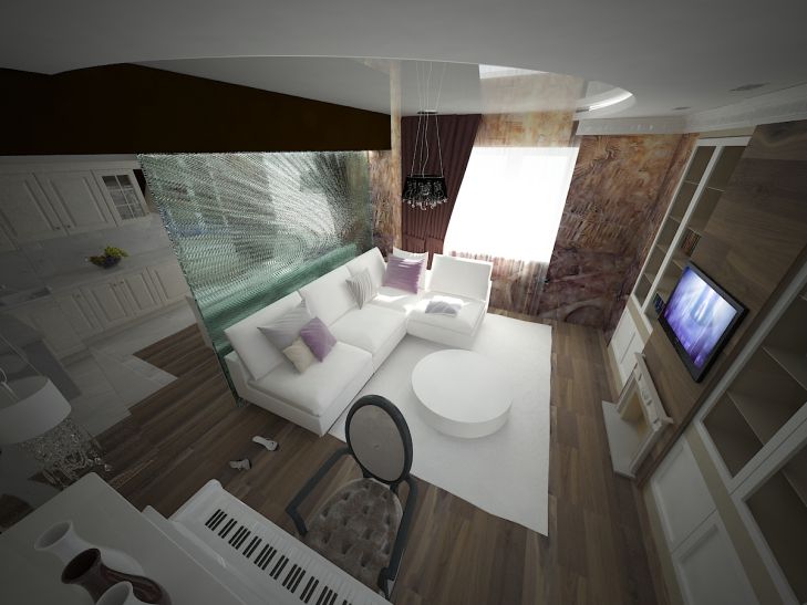 Телевизор установите на стену, подойдет плазменная модель. Так под него можно не предусматривать тумбочку, освобождается место.