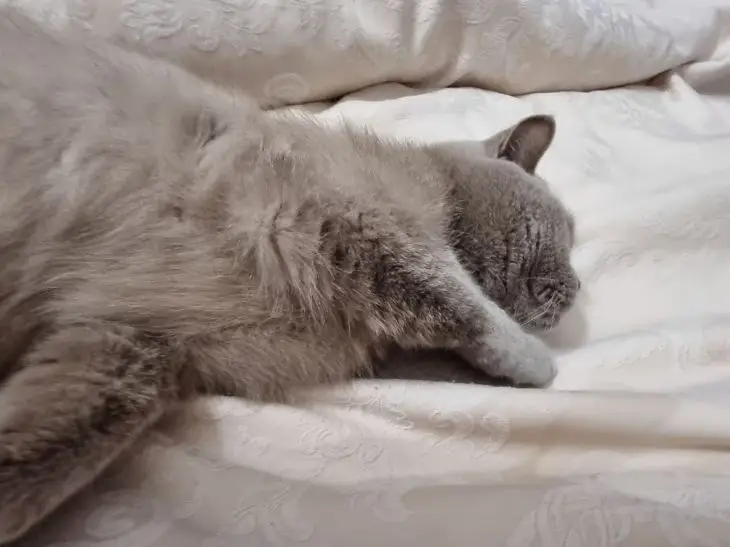 Полезно давать плотный ужин. Тогда кошка спит дольше и спокойнее.
