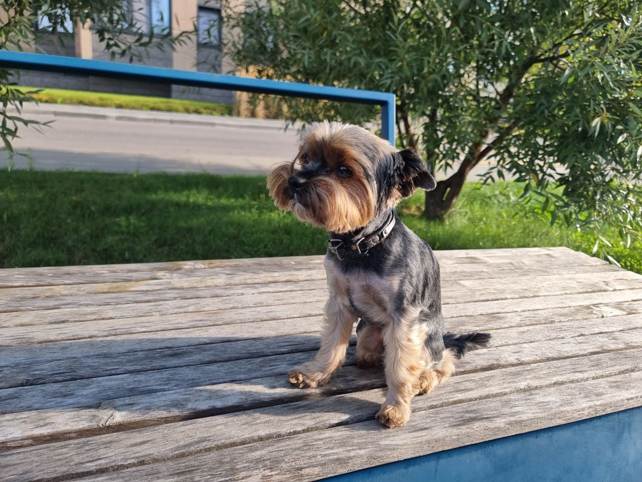 Опущенный хвост с лёгким подрагиванием говорит о неуверенности. Пёс хочет взаимодействия, но боится.