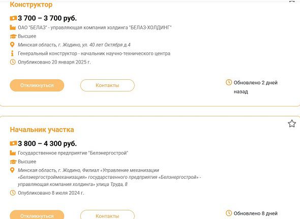 Например, от 3 800 до 4 300 рублей начальнику участка готово платить предприятие «Белэнергострой».