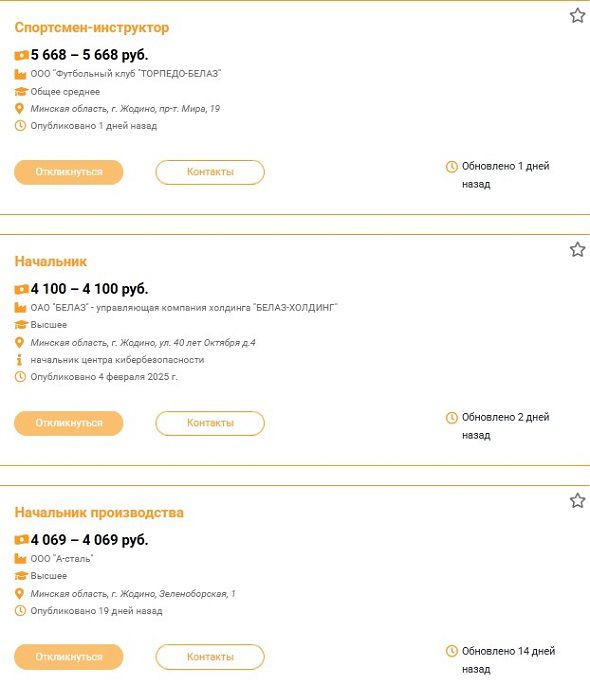 Кстати, есть вакансия и от Белорусского автомобильного завода.