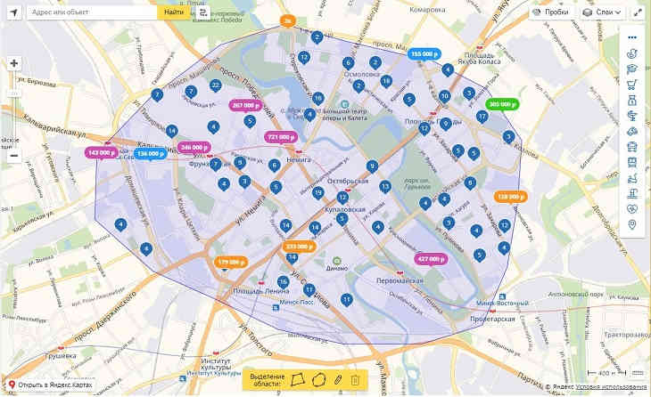 Подскажем вам еще один секрет. Покупатели могут искать квартиры исходя из конкретного места с помощью нового сервиса Realt.by по поиску квартир прямо по карте. Выделяйте на карте интересующую область — и сервис покажет все квартиры, которые выставлены на продажу на этой территории.
