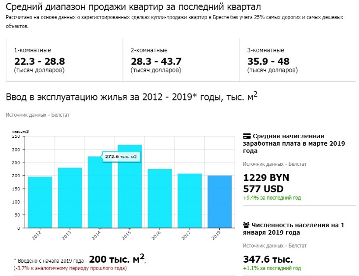 О ценах предложения и реальных сделок можно следить на региональных страницах Realt.by в рубрике «Статистика недвижимости». Здесь собрана масса полезной информации с привлечением важных данных по ценам предложения квартир, по ценам реальных сделок, по вводу жилья, по количеству населения и уровню средней зарплаты в динамике по сравнению с последним годом.