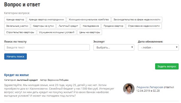 Ну и, наконец, если у вас есть очень серьезные вопросы по разделу имущества, продаже сложных вариантов, покупке с привлечением кредита, покупке земли, улучшению жилищных условий, то 25 риэлтеров и адвокатов сотрудничают с рубрикой «Вопрос – ответ» и отвечают на все вопросы пользователей даже ночью!