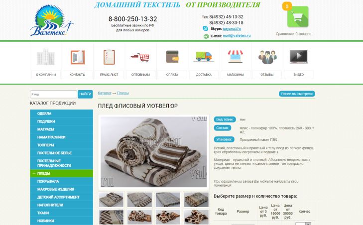 На отечественном рынке доверие потребителей заслужила компания Valetex, продукция которого успешно продается по всей стране. Ивановское предприятие оснащено современным оборудованием, а для пошива пледов используется высококлассное сырье от проверенных поставщиков. Овечья шерсть подвергается многостадийной обработке, при этом каждый производственный этап подлежит тщательному контролю со стороны квалифицированного персонала. Благодаря такому подходу компания выпускает натуральные, экологически безопасные, легкие изделия. На все товары имеются сертификаты качества.