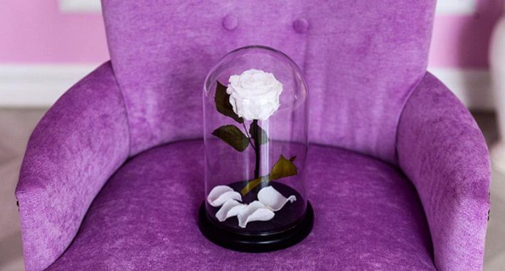 Кроме защитных функций, она выполняет и декоративные. Оригинальный купол из прозрачного стекла, под которым находится роскошная роза, – стильное украшение для любой комнаты. Он займет достойное место и в спальне, и в гостиной, и даже в офисе. Колба не только не скрывает, но и подчеркивает естественную красоту цветов. Именно поэтому при создании композиций из стабилизированных роз она является незаменимым атрибутом.