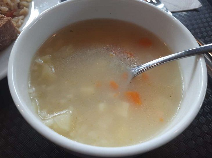 Даже простой картофельный суп превращался в насыщенное блюдо.