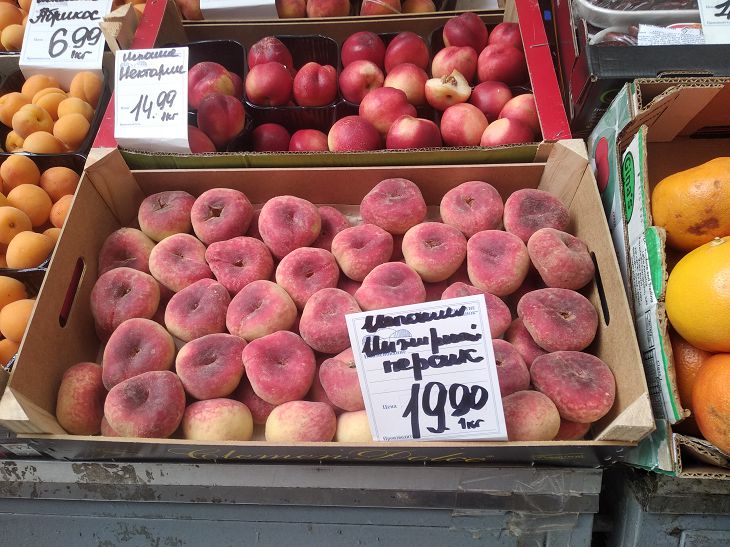 Персик в среднем стоит 20, абрикос – 7, испанский нектарин – 15 рублей.