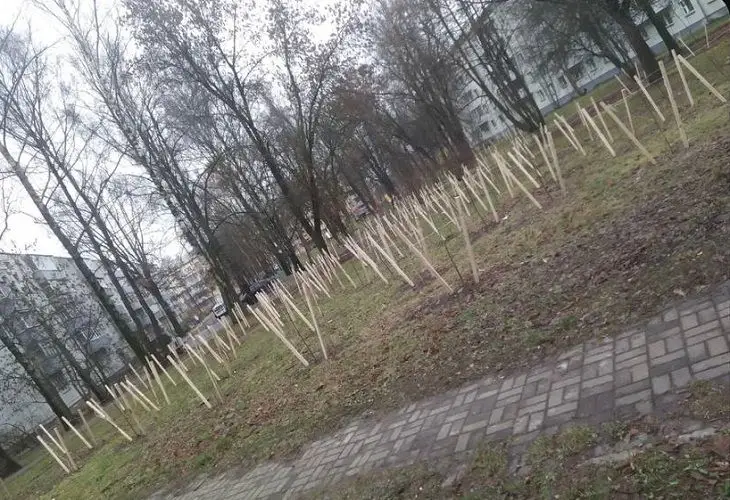 Жительница Минска в одной из социальных сетей выложила фотографии молодых саженцев березы и рябины на улице Ландера.