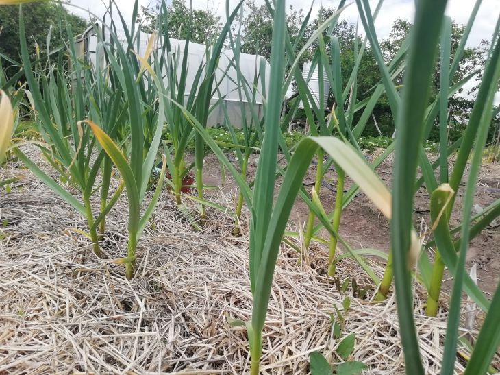 Яровой чеснок очень просто собрать – достаточно выдернуть из грядки и положить на сухую газету или сено.