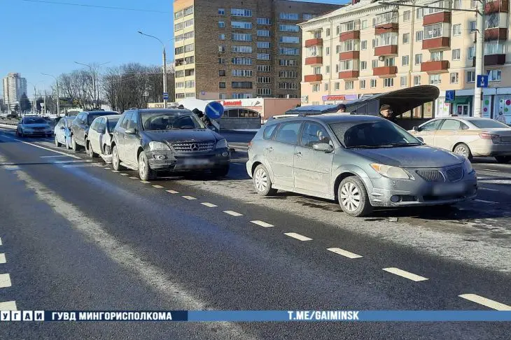 Авария случилась вблизи дома №69, где столкнулись Renault, Honda, Skoda, Geely, Mercedes и Pontiac, сообщает корреспондент Белновости со ссылкой на пресс-службу УГАИ ГУВД Мингорисполкома.
