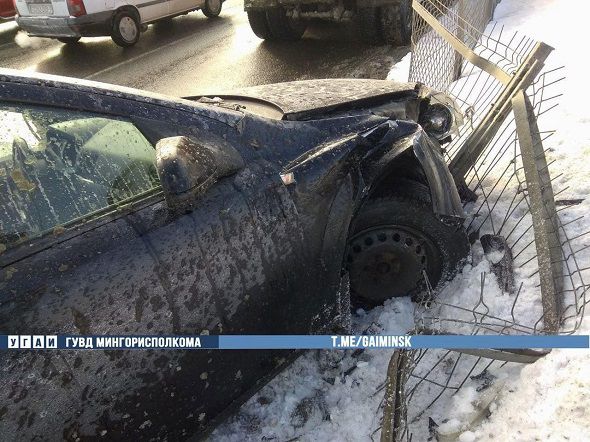 Итогом аварии стали весьма печальные последствия для иномарки – машина оказалась на металлическом ограждении. Об этом в своем телеграмм-канале информирует пресс-служба УГАИ ГУВД Мингорисполкома.