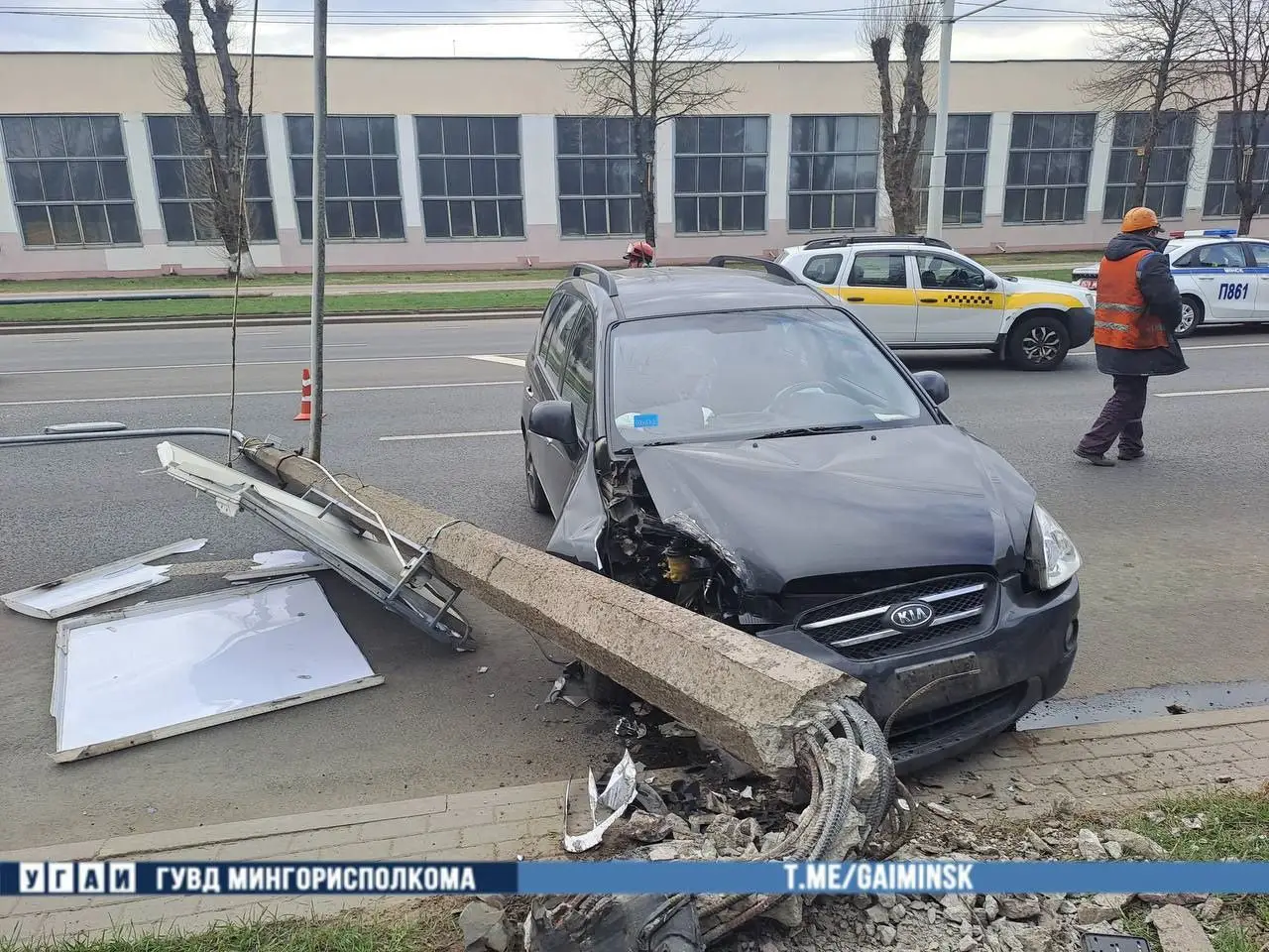 В Минске 70-летний пенсионер на KIA врезался в столб. Стало плохо за рулем