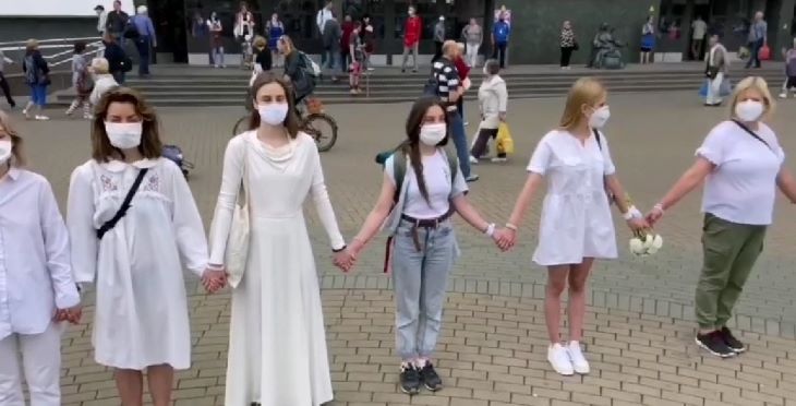 В белорусской столице сегодня, 12 августа, вдоль улицы Веры Хоружей выстроились женщины в белой одежде.