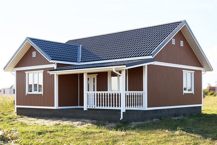 Кроме того, учитывайте окружающую среду: дом в поле будет отлично смотреться в песочных тонах, а постройка у озера или в лесу заиграет, если выбрать зелёные или графитовые оттенки.