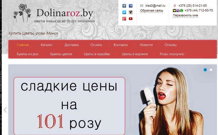 Компания dolinaroz сейчас занимает лидирующие позиции в этом сегменте. А дело в том, что она предлагает приемлемые цены, гибкие условия и оперативную доставку к дому. Стоимость на цветы удалось снизить благодаря тому, что все они хранятся на специальном складе и нет необходимости платить за аренду магазина в самом центре города. Можно выделить и несколько преимуществ компании:
