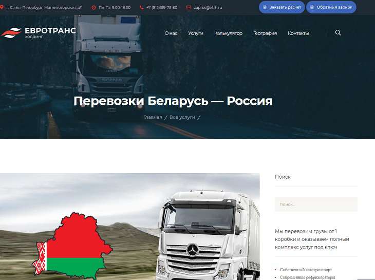 На официальном сайте компании https://etrh.ru/ можно ознакомиться со всей информацией, касающейся организации и осуществления грузоперевозок, найти ответы на все вопросы. Сервис предоставляет возможность самостоятельного расчёта и определения примерно приближенной стоимости грузоперевозки. Для этого предусмотрен специальный калькулятор.