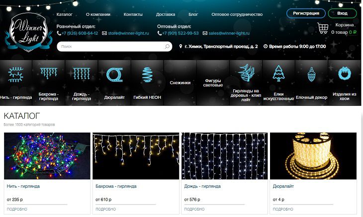 Переходя на официальный сайт Winner Light, каждый сможет увидеть по-настоящему огромный ассортимент украшений. В этом магазине можно купить искусственные елки, елочный декор, изделия из хвои, гирлянды следующего типа:
