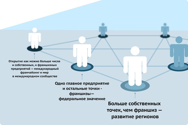 1. Франчайзинговая сеть с несколькими формами бизнеса (сочетание франчайзинговых торговых точек и собственных точек компании);
