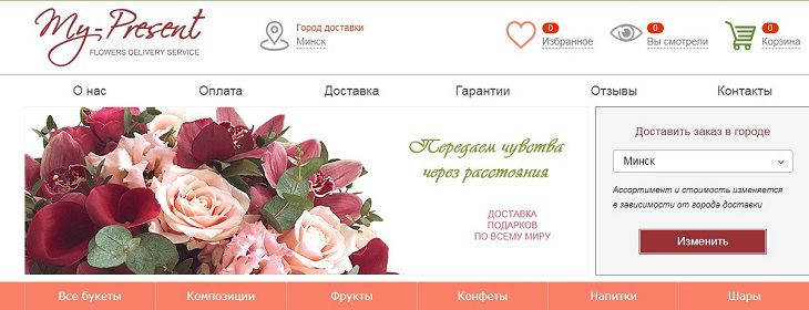 И самое главное – оформить заказ на доставку можно с помощью своего мобильного телефона или ПК, важно только иметь стабильный доступ в интернет. А если он по каким-то причинам отсутствует, можно просто связаться с консультантами компании My-present.ru, они помогут принять оптимальное решение и ответят на все вопросы, если они возникают в голове.