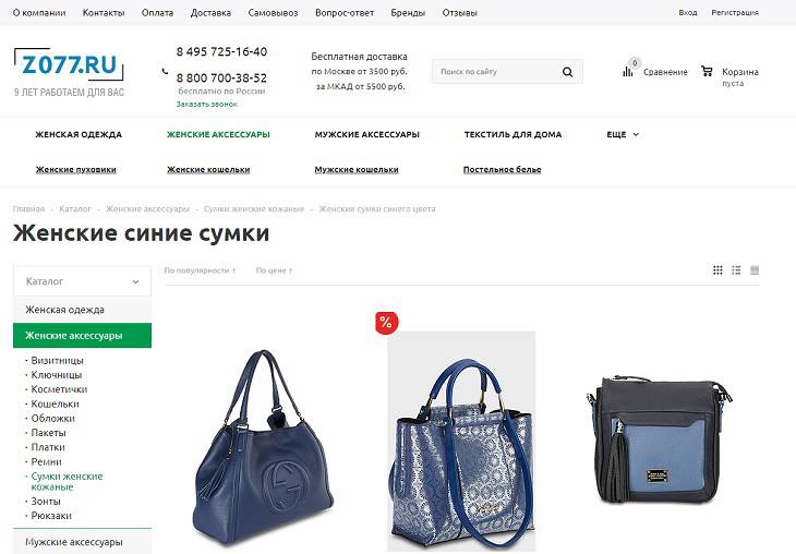Чтобы выгодно купить женскую синюю сумку с доставкой, вы можете прибегнуть к услугам различных специализированных компаний, но только интернет-магазин z077.ru предложит вам исключительное качество товара и сотрудничество на выгодных вам условиях.