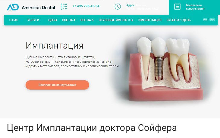 American Dentistry – это уникальная Московская клиника, которая применяет инновационные подходы во время имплантации. Приемом занимаются известные специалисты Бунев Алексей и Сойфер Владимир.