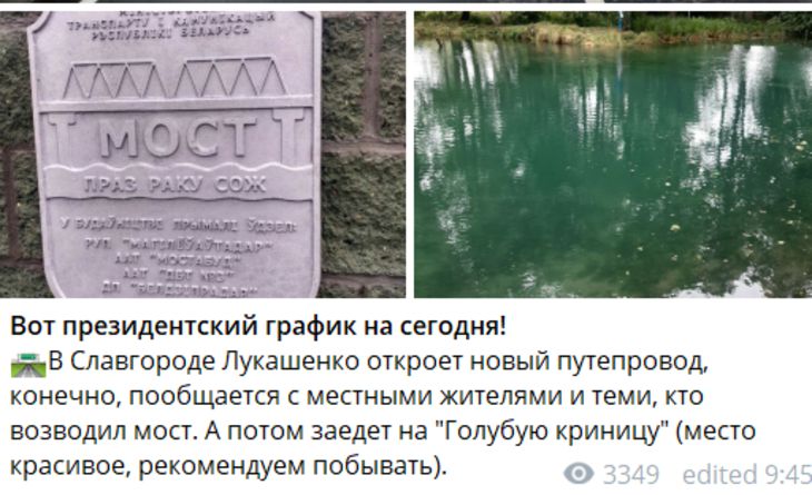 Как сообщает президентский пул, Александр Лукашенко также планирует заехать на «Голубую криницу».