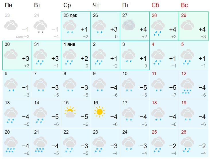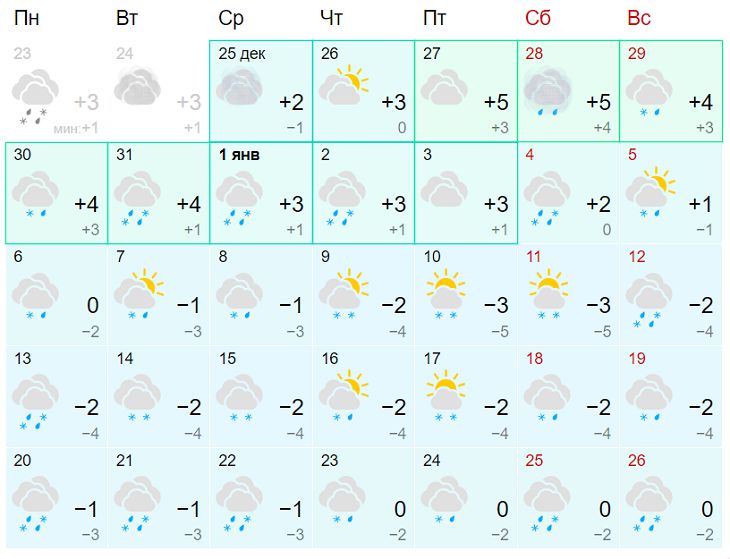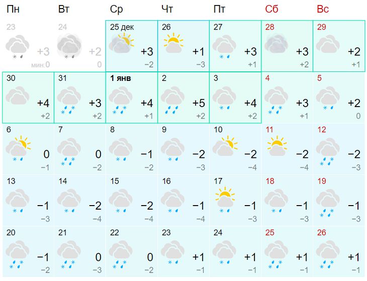 1 января брестчанам следует ждать плюсовую температуру (+4 градуса днем, +1 градус ночью) и снег с дождем.
